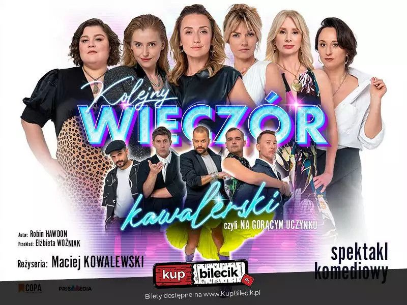 bilety: Zapraszamy na przezabawną farsę w gwiazdorskiej obsadzie! Niezależną kontynuację wielkiego hitu teatralnego Wieczór kawalerski! Wieczór kawalerski, czyli na gorącym uczynku! Kłamstwo ma krótkie nogi i cztery kochanki. Jeśli masz ochotę na łzy, gimnastykę i taniec brzucha - musisz TO zobaczyć! Będziesz płakać i skręcać się ze śmiechu oraz zajrzysz za kulisy własnego związku podczas najlepszej z fars Robina Hawdona w interpretacji Macieja Kowalewskiego! W rolach głównych: ekskluzywny londyński apartament, dwóch prawników, cztery panie i błąd w kalendarzu. Wciągnij z nami endorfiny! Kolejny wieczór kawalerski czyli Na gorącym uczynku artyści: Reżyseria: Maciej KowalewskiKłamstwo ma krótkie nogi i cztery kochanki. Jeśli masz ochotę na łzy, gimnastykę i taniec brzucha – musisz TO zobaczyć! Będziesz płakać i skręcać się ze śmiechu oraz zajrzysz za kulisy własnego związku podczas najlepszej z fars Robina Hawdona w interpretacji Macieja Kowalewskiego! W rolach głównych: ekskluzywny londyński apartament, dwóch prawników, cztery panie i błąd w kalendarzu. Wciągnij z nami endorfiny! Bilety do nabycia na: KupBilecik.pl |